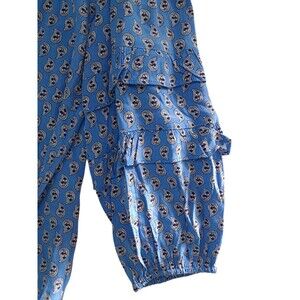 LOFT Top Blue Paisley Ruffle Puff Long Sleeve Button Boho Spring Women's Small