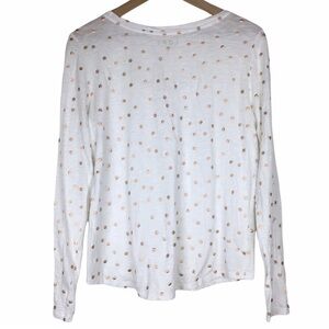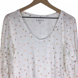 LOFT Top T Shirt Shimmer Gold Dot Long Sleeve Scoop Neck Metallic Sheer Soft Size Medium