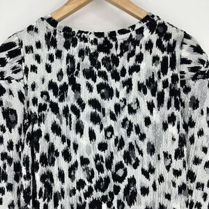 LOFT Top Size Small Gray Animal Print Shirt Long Puff Sleeve Stretch Leopard