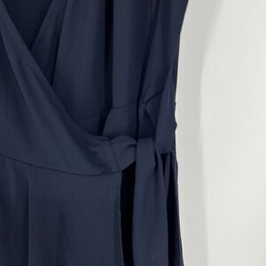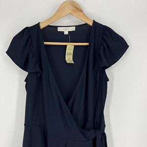LOFT Top Size XS Petite Navy Blue V Neck Ruffle Blouse Flutter Sleeve Wrap Shirt