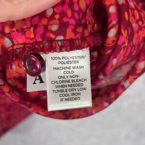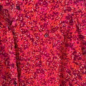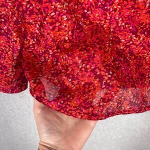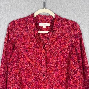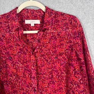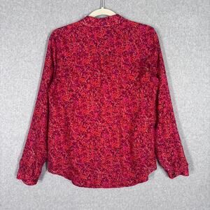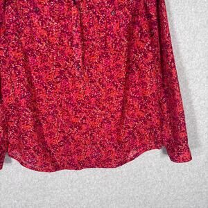 LOFT Top Small Floral Utility Sheer Popover Blouse Maximalist Loud Red Pink Orange Floral Flowers Bloom Pockets Chiffon Corp Career Work Office Business Church Blouse Shirt Preppy Nautical Classic Casual Buttons Collar Long Sleeve