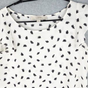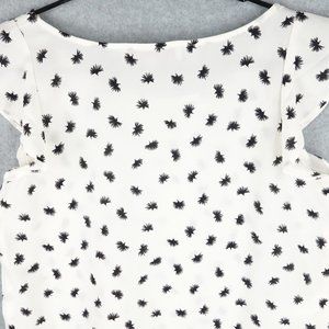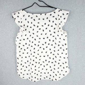 LOFT Top Women's Extra Small Petite White Chiffon Flutter Sleeve Ruffle Hem Boho