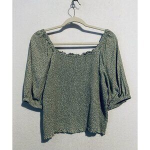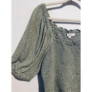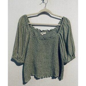 LOFT Top Womens Large Green Dotted Smocked Ruffle Cropped Boho Cottagecore