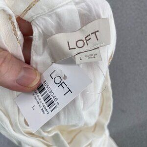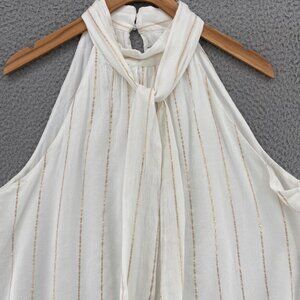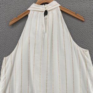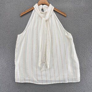 LOFT Top Womens Large White Gold Shimmer Stripe Halter Neck Sleeveless Tied Neck