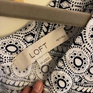 LOFT Top Women's Small Petite Medallion Sleeveless Peplum Blouse V Neck White