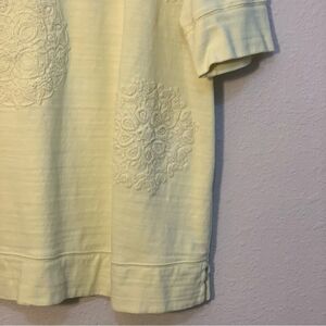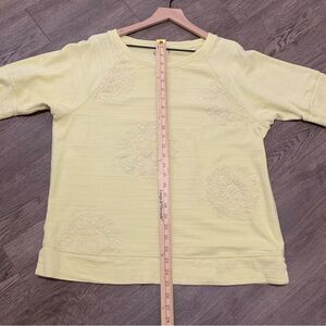 LOFT Top Women’s XL Lime Yellow Round Neck Elbow Sleeve Embroidered.