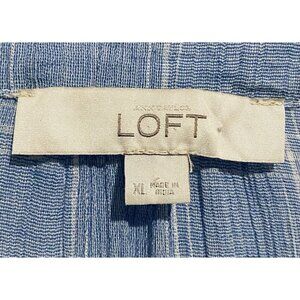 LOFT Top Womens XL Windowpane Embroidered Crochet Bell Sleeve Henley Blue Boho