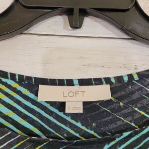 LOFT Tropical Peacock Palm Leaves Abstract Short Cap Sleeve Striped Top Blouse S