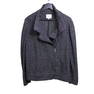 LOFT Tweed Biker Jacket Gray Cotton Blend Collared Zip Pockets Sz XL