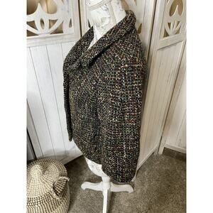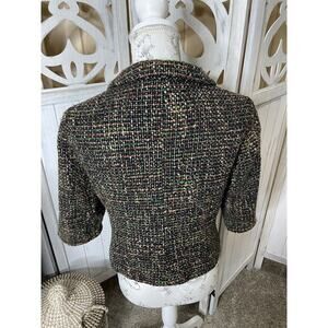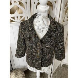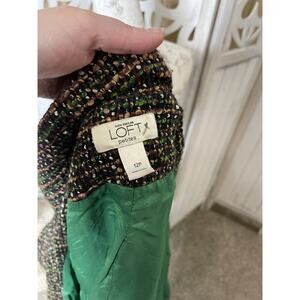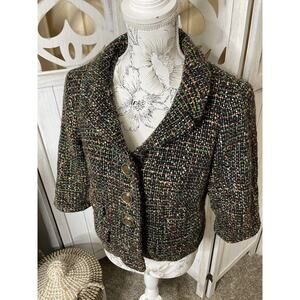 LOFT Tweed Boucle Cropped Blazer Women's Size 12P Greens Multicolor 3/4 Sleeve