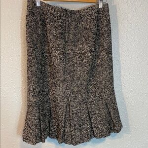 LOFT Tweed Gray/Cream and Black Midi Pencil Skirt with Pleats