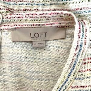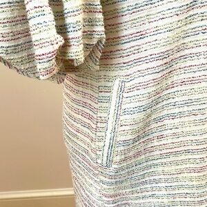 LOFT Tweed Short Sleeve A-Line Dress XS — Cream with Muted Blue/Pink/Green Strip