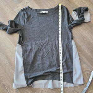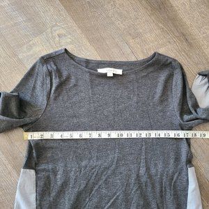LOFT US Women's Size XS Mixed Media 3/4 Sleeve Top Ruffle Sleeve Gray Stretch