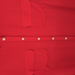 Chic red button-down shirt with front pockets. Ideal for casual or formal wear.