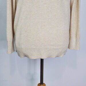 LOFT V-Neck Drop Shoulder Pullover Tan Sweater Size L