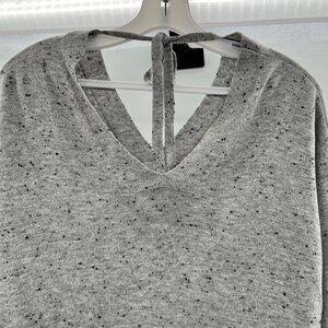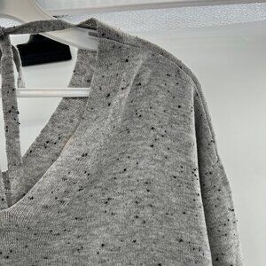 LOFT V-Neck Lightweight Sweater Keyhole Tie Back Gray/Black Speckle Size XS