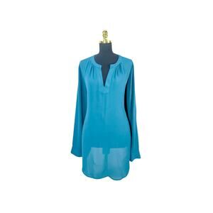LOFT V-Neck Long Sleeve Blouse in Teal Blue - Women's Size XL