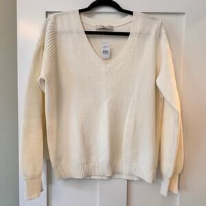 LOFT V-Neck Sweater Off White Size Large NEW NWT Career Workwear Ann Taylor
