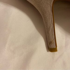 These vegan faux suede 3" heels/pumps are in excellent condition with only a minor mark ( see pics) on one of by the heels.