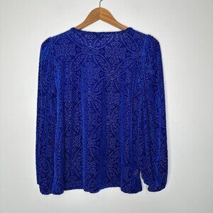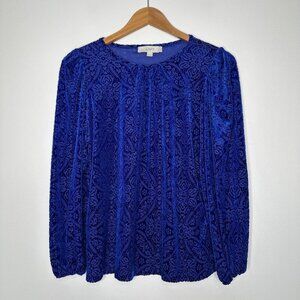 LOFT Velvet Burnout Puff Sleeve Blouse Blue Mosaic Size XS