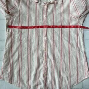 LOFT Vertical Red Pinstripe 100% Cotton Soft Button Down Shirt Top-sz L