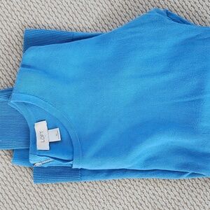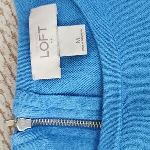 Chic blue knit top with long sleeves. Ideal for layering or standalone wear. Nice soft and then swester/top. zipper in back.