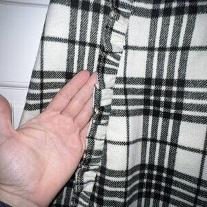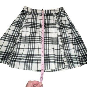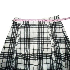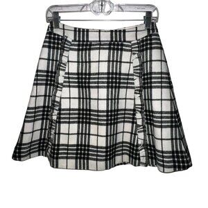 LOFT WOMEN BLACK WHITE PLAID A LINE MINI SKIRT WOOL BLEND RUFFLE DETAIL SIZE 0