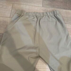 The product is a pair of LOFT women's cuffed tan high rise straight pants in size large with an elastic waist. These versatile dress pants are perfect for casual occasions and feature a flattering straight leg style. The cuffed hem adds a stylish touch, while the elastic waist ensures a comfortable fit. Made by LOFT, these pants are designed for regular fit and are suitable for women looking for a classic and trendy addition to their wardrobe.