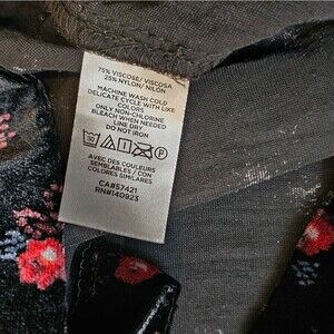 LOFT Whimsygoth Blouse Short Sleeve Black Velvet Rose Print Peasant XXSP