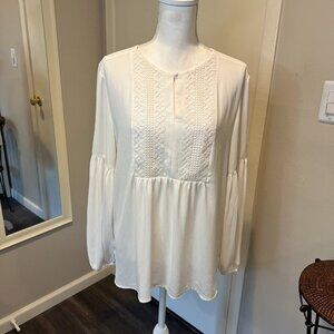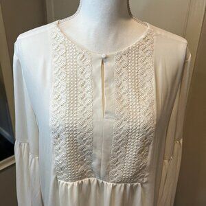 LOFT Whisper White Embroidered Lace Blouse, Size Medium