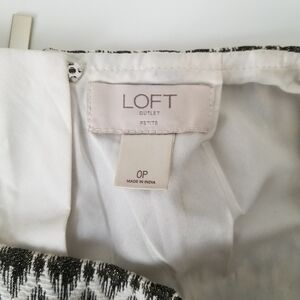 LOFT White Black Metallic Gold Print A Line Skirt Size 0 Petite