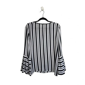 LOFT White & Black Striped Bell Sleeve Blouse Large Women’s