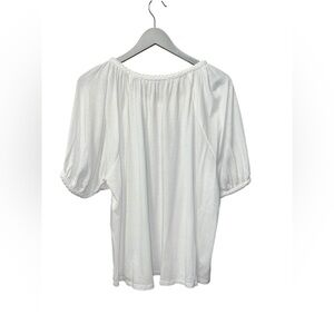 LOFT White Braided Neck Short Sleeve Blouse – Size Large