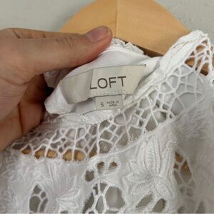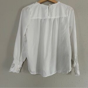 LOFT White Eyelet Lace Long Sleeve Blouse Neutral Casual Office Small