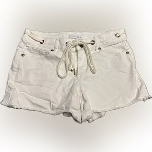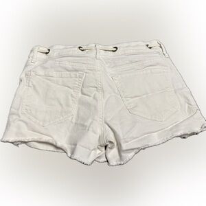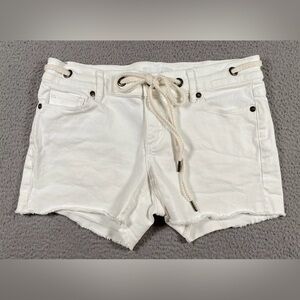 Chic white jean shorts with drawstring. Perfect for casual wear.