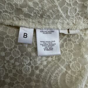 LOFT White Lace Blouse Medium Scallop Hem Short Sleeve Crochet Top Ivory