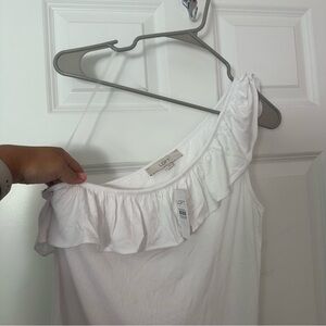 Chic one-shoulder design with ruffle detail. Perfect for a stylish look.