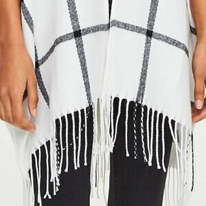 Elevate your style with this versatile LOFT plaid wrap scarf featuring a classic white and gray design with fringe details. Perfect for layering over casual or dressy outfits, it pairs effortlessly with jeans, boots, and your favorite tops for a chic and cozy look. The lightweight, soft acrylic material makes it a comfortable and stylish accessory for any season.