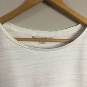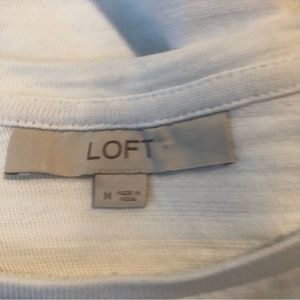 Loft white round neck pullover top in size medium. Long sleeves have lace cuffs. Soft. Neutral.