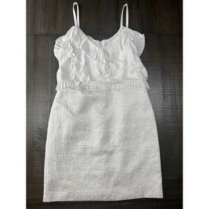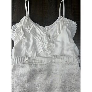 LOFT White Ruffle Detail, Party Cocktail Midi Dress Size 12