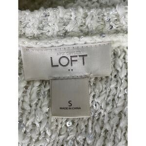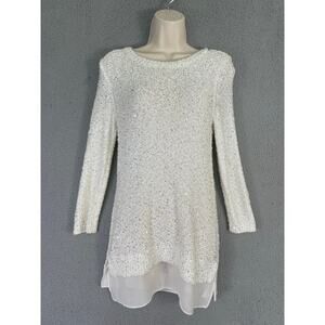 LOFT White Sequin Knit Sweater Tunic Sheer Hem Women's Small