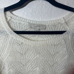 Cozy and chic, this LOFT sweater is the perfect layering piece for cooler days. It features a soft, lightweight knit with a beautiful textured chevron-style pattern throughout. Designed with a classic crew neckline and long sleeves, it’s versatile enough to dress up or down.