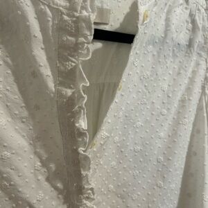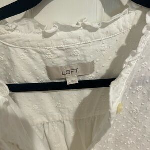 LOFT White Textured Ruffle Blouse