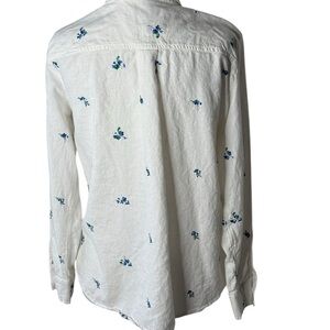 LOFT White and Black Relaxed Button Down Shirt with Cuffed Sleeves MP