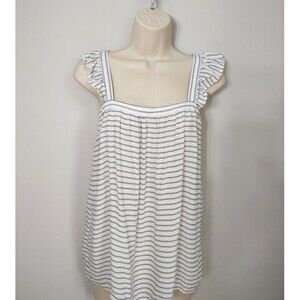 LOFT White and Black Striped Ruffled Strap Tank Top XS.