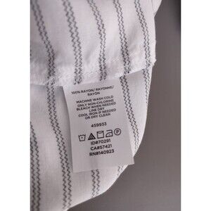 White with black horizontal pinstripes with subtle zigzag pattern Ruffles on the edge of the straps Elastic top hem on back side to give a more fitted yet comfortable fit Fun and flirty pullover top for the summer!