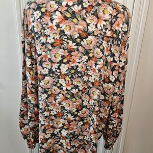 LOFT White and Pink Floral Long Sleeve Front Tie Blouse