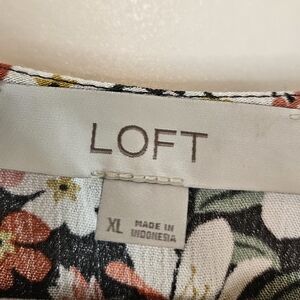 Embrace the elegance of the LOFT blouse, featuring a charming floral design in white and pink. This relaxed-fit top is crafted with long sleeves and a stylish tie front, making it a versatile addition to your wardrobe. Perfect for both casual outings and more refined occasions, this blouse combines comfort with a touch of sophistication.