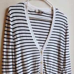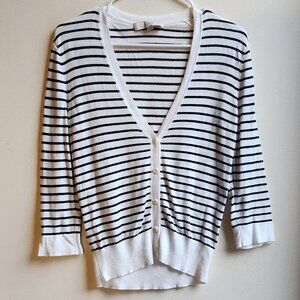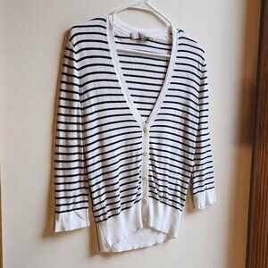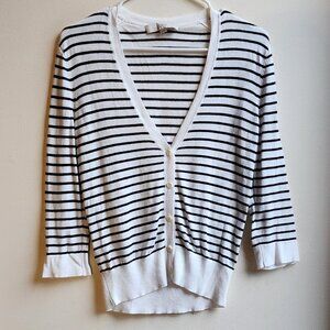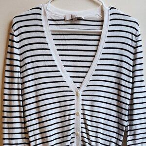 LOFT White/Black Striped V-Neck Cardigan Size Small