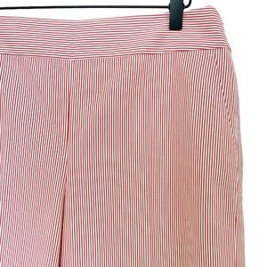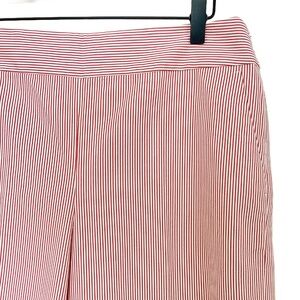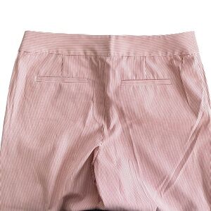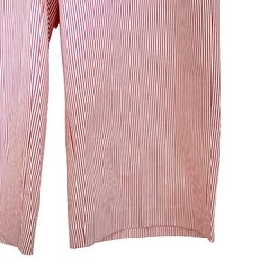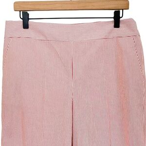 New, with tag. High-rise cropped pants. Wide pant legs. Pinstripe red & white. Side zipper. 2 pockets in the front, 2 pockets in the back. Perfect item for work or every day! A high fashion looking piece!
